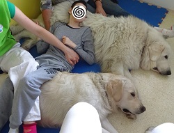 Pro výkon této činnosti je využíván speciálně vycvičený pes s canisterapeutickými zkouškami.